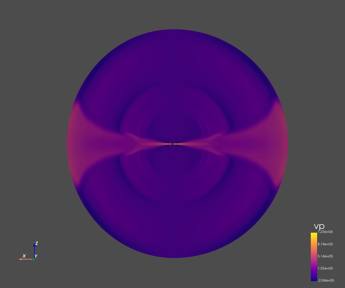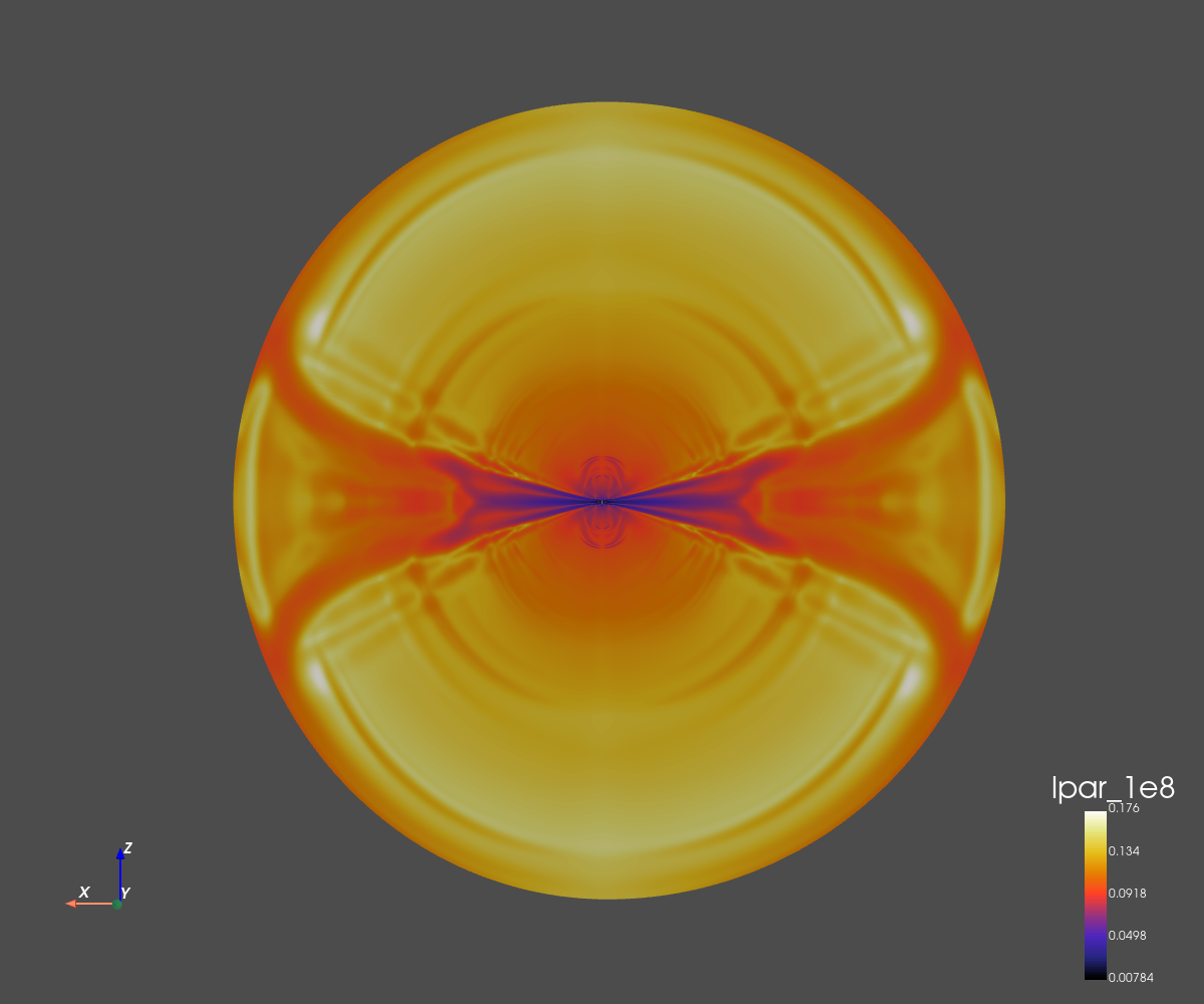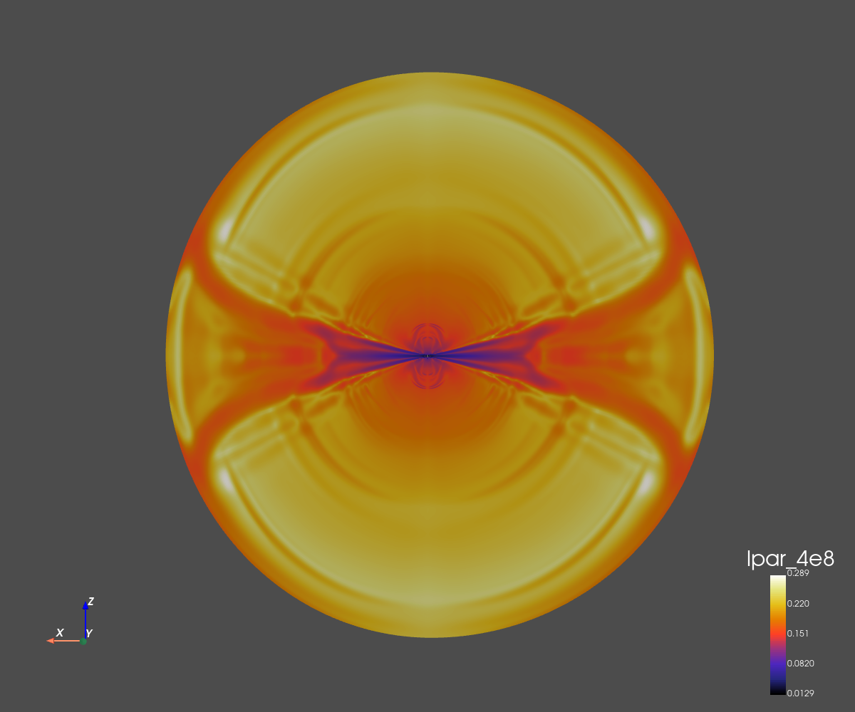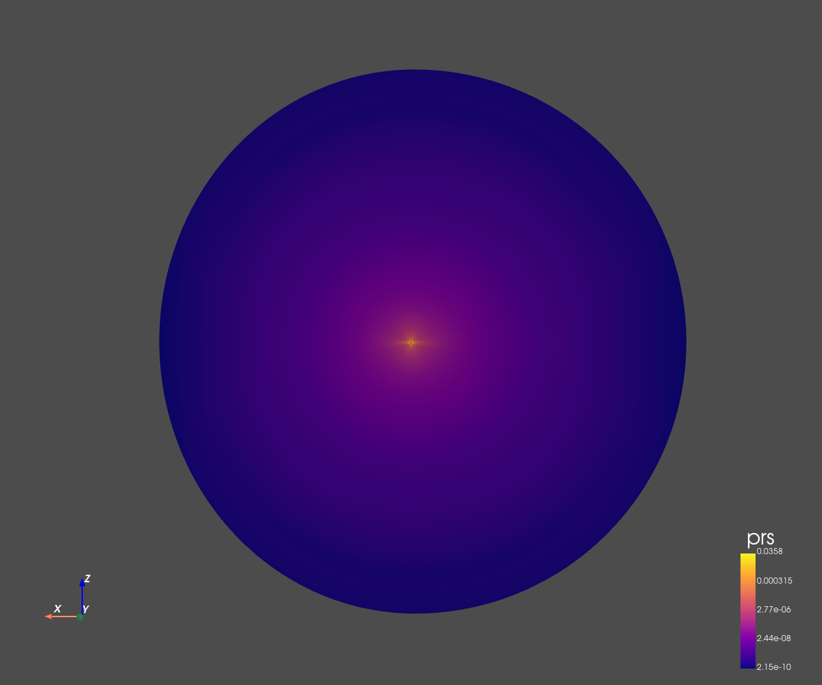 The grid dimension is 256x256 in spherical coordinates (radius and co-latitude).