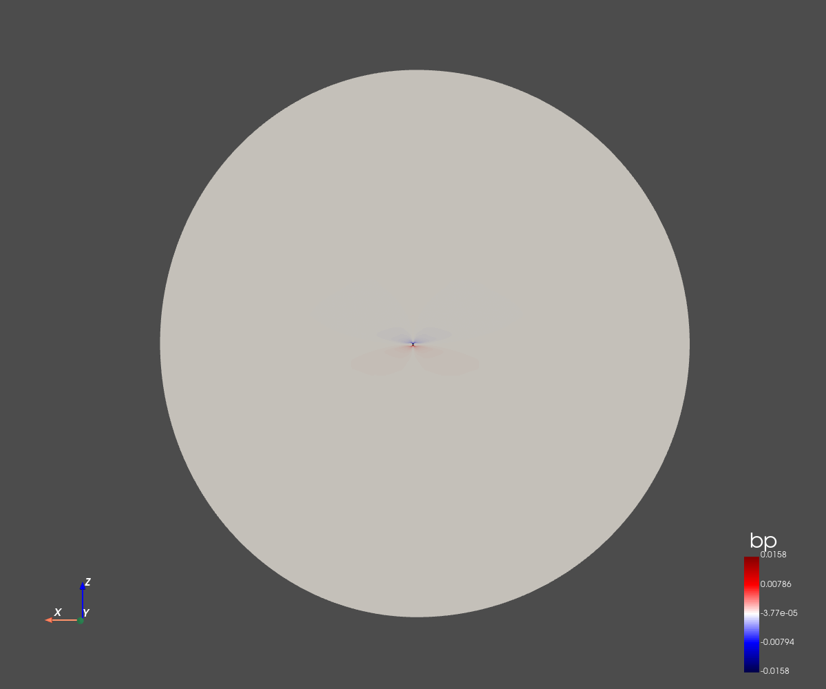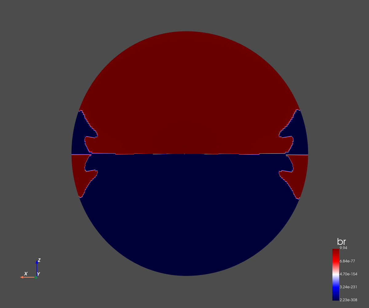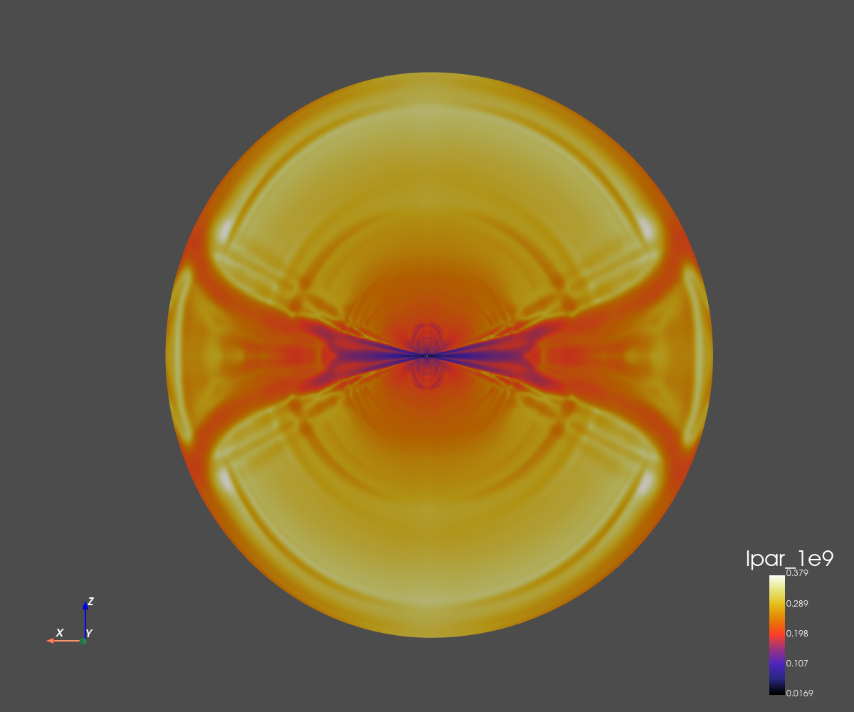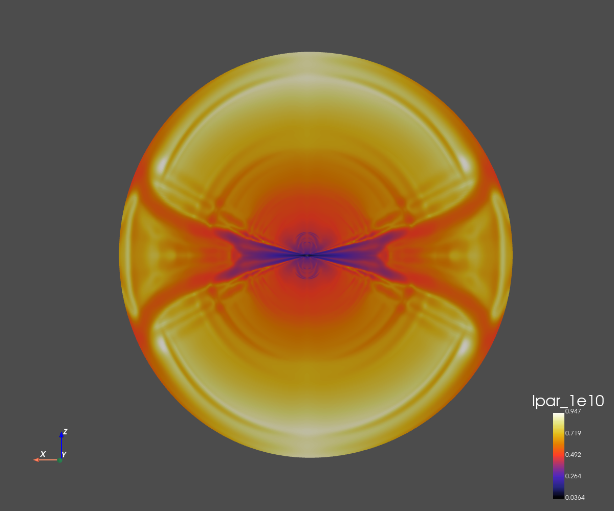 The grid dimension is 256x256 in spherical coordinates (radius and co-latitude).