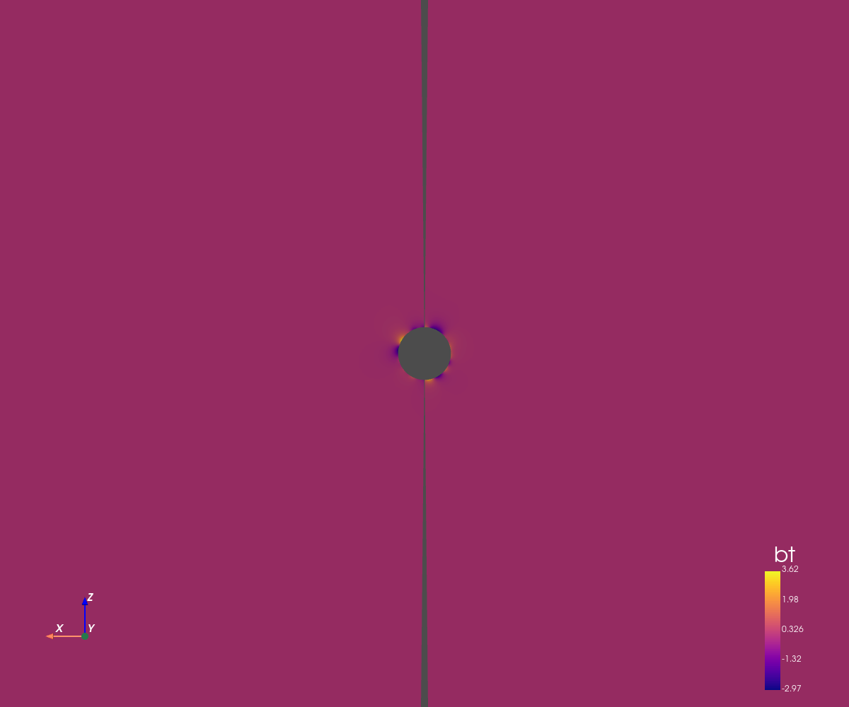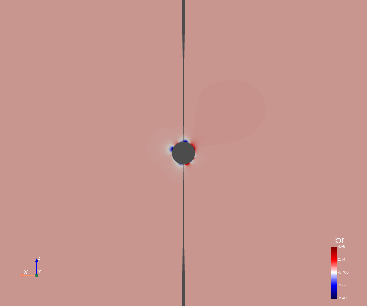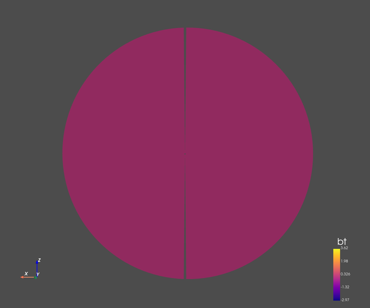 Latitudinal magnetic field of the star (meridional view, which means in the XZ plane) (G)