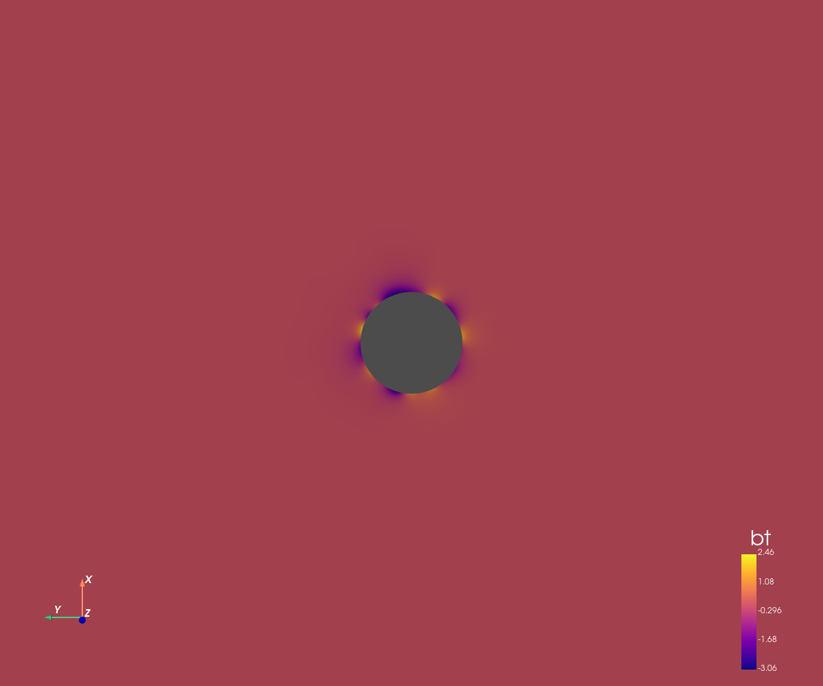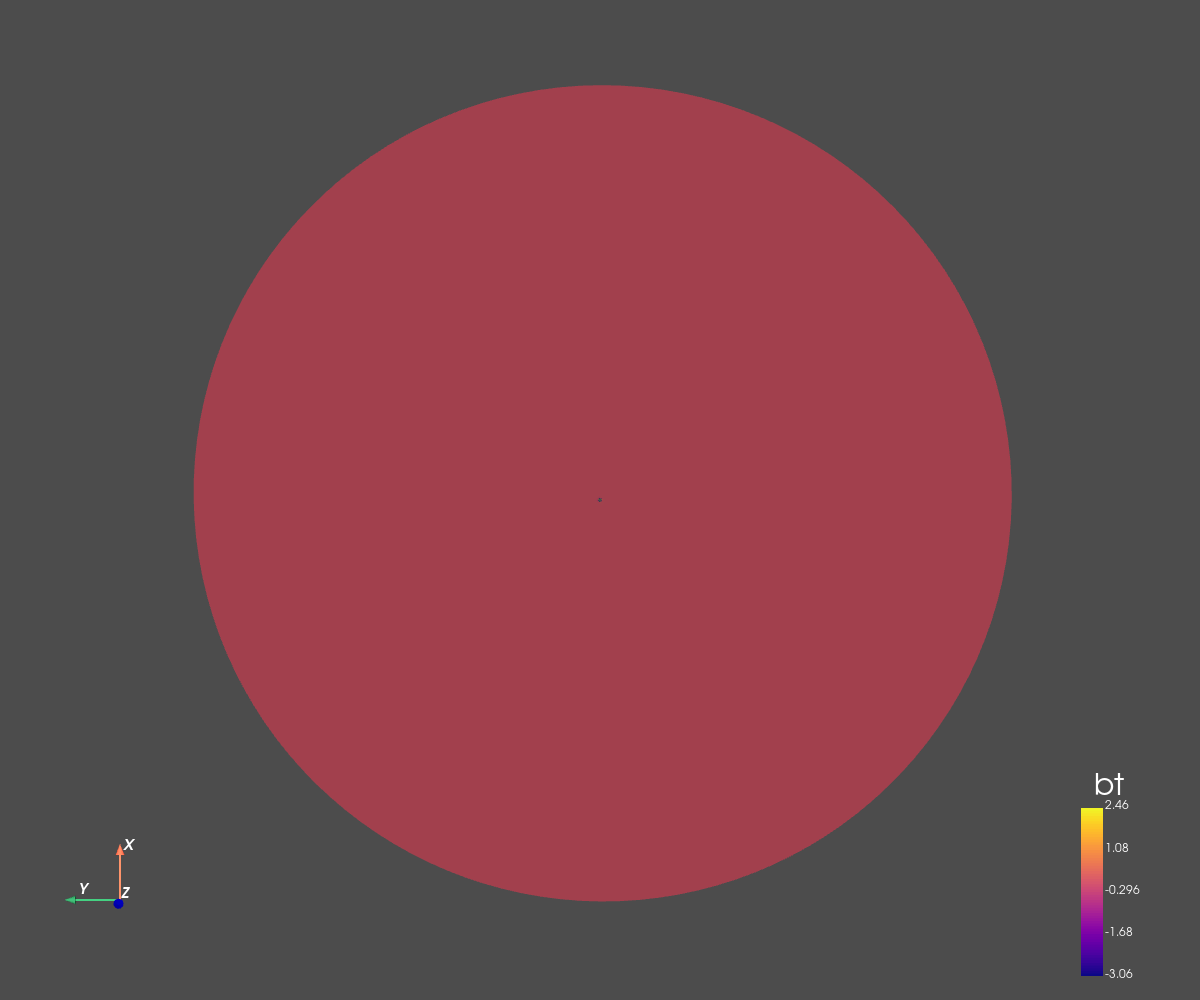 Zoomed latitudinal magnetic field of the star (equatorial view, which means in the XY plane) (G)