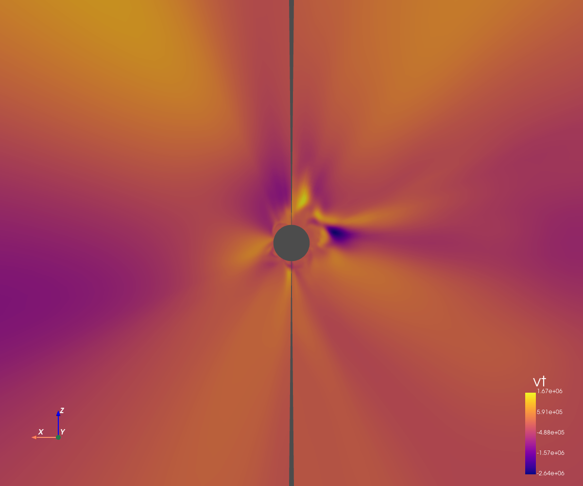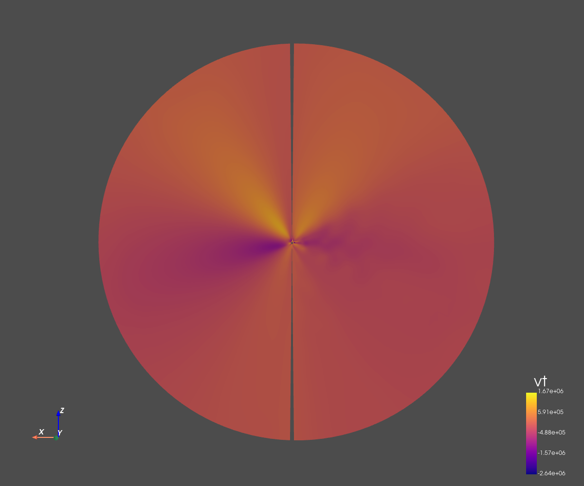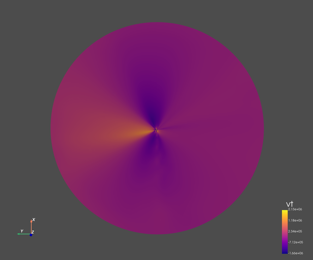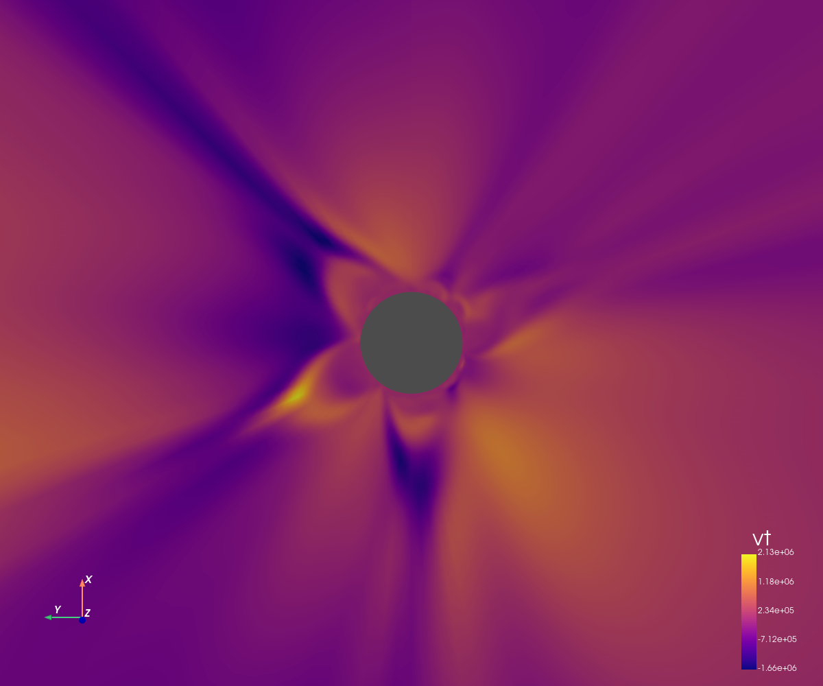 Latitudinal velocity of the solar wind (equatorial view, which means in the XY plane) (cm/s)