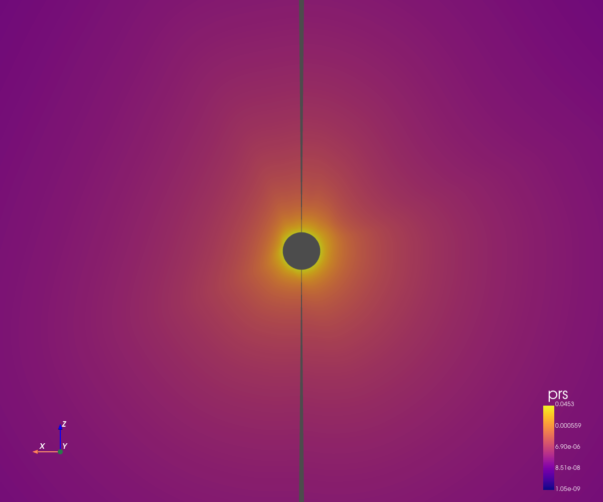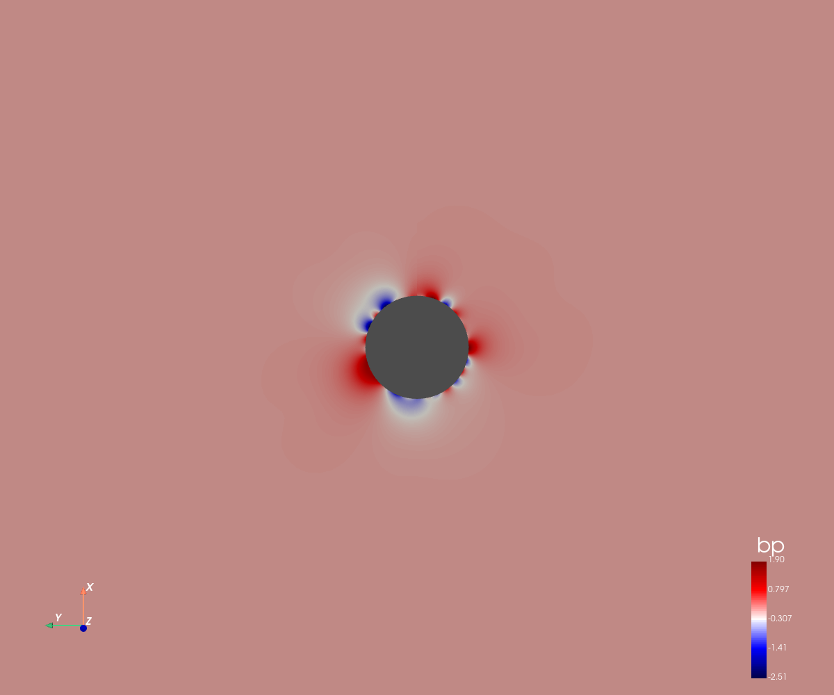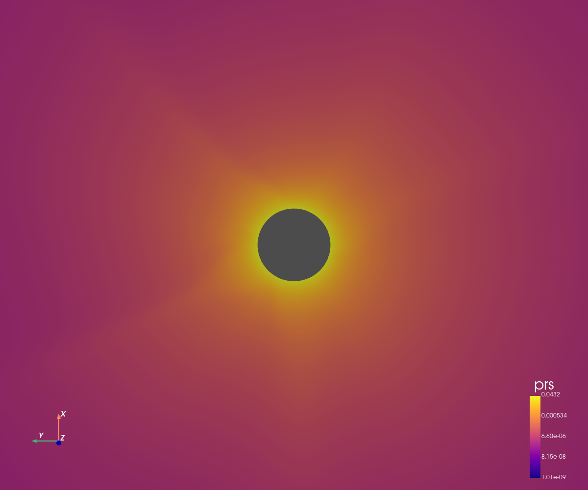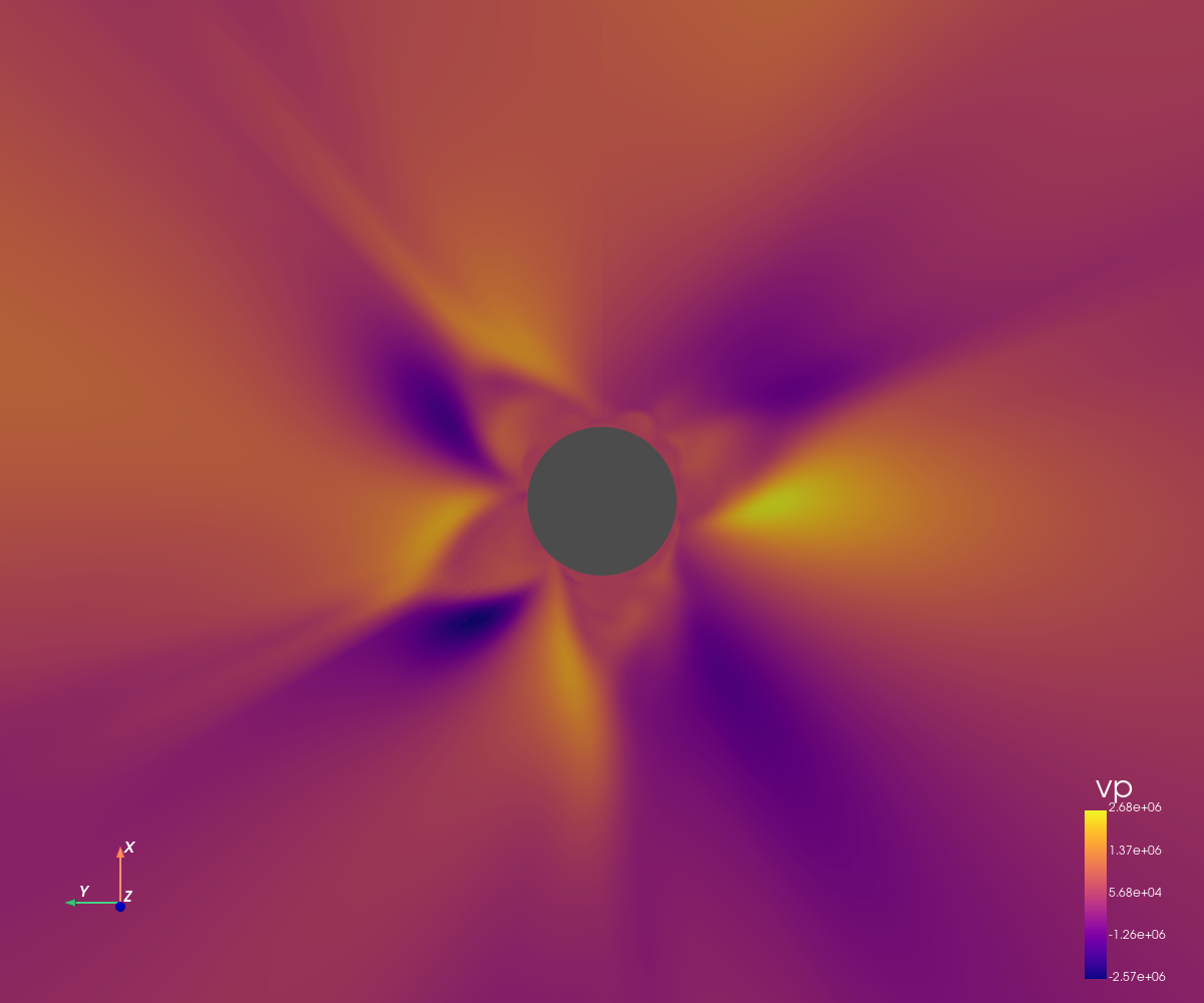 Pressure of the solar wind (equatorial view, which means in the XY plane) (dyne/cm^2)