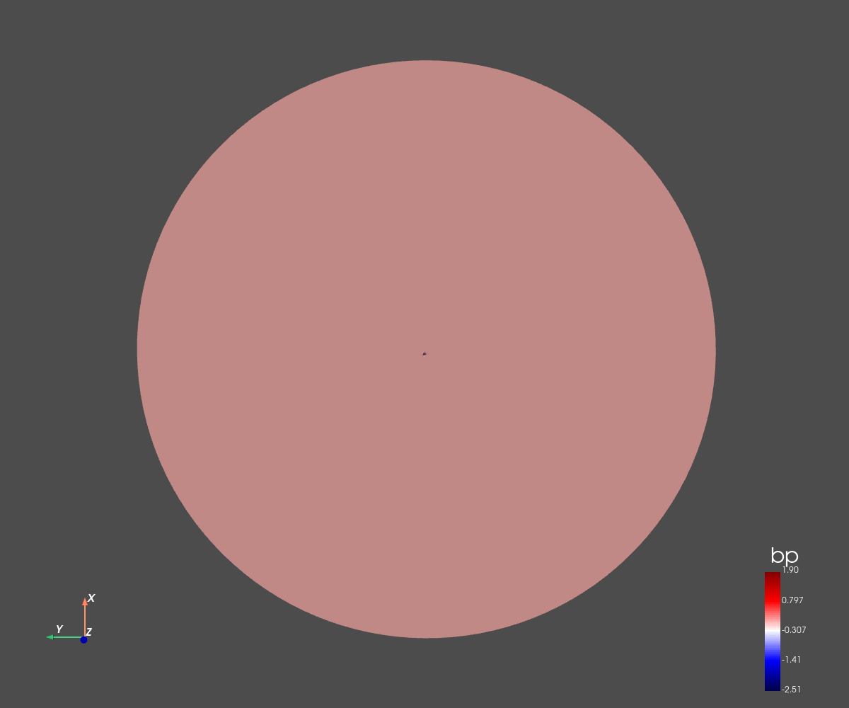 Zoomed radial magnetic field of the star (meridional view, which means in the XZ plane) (G)