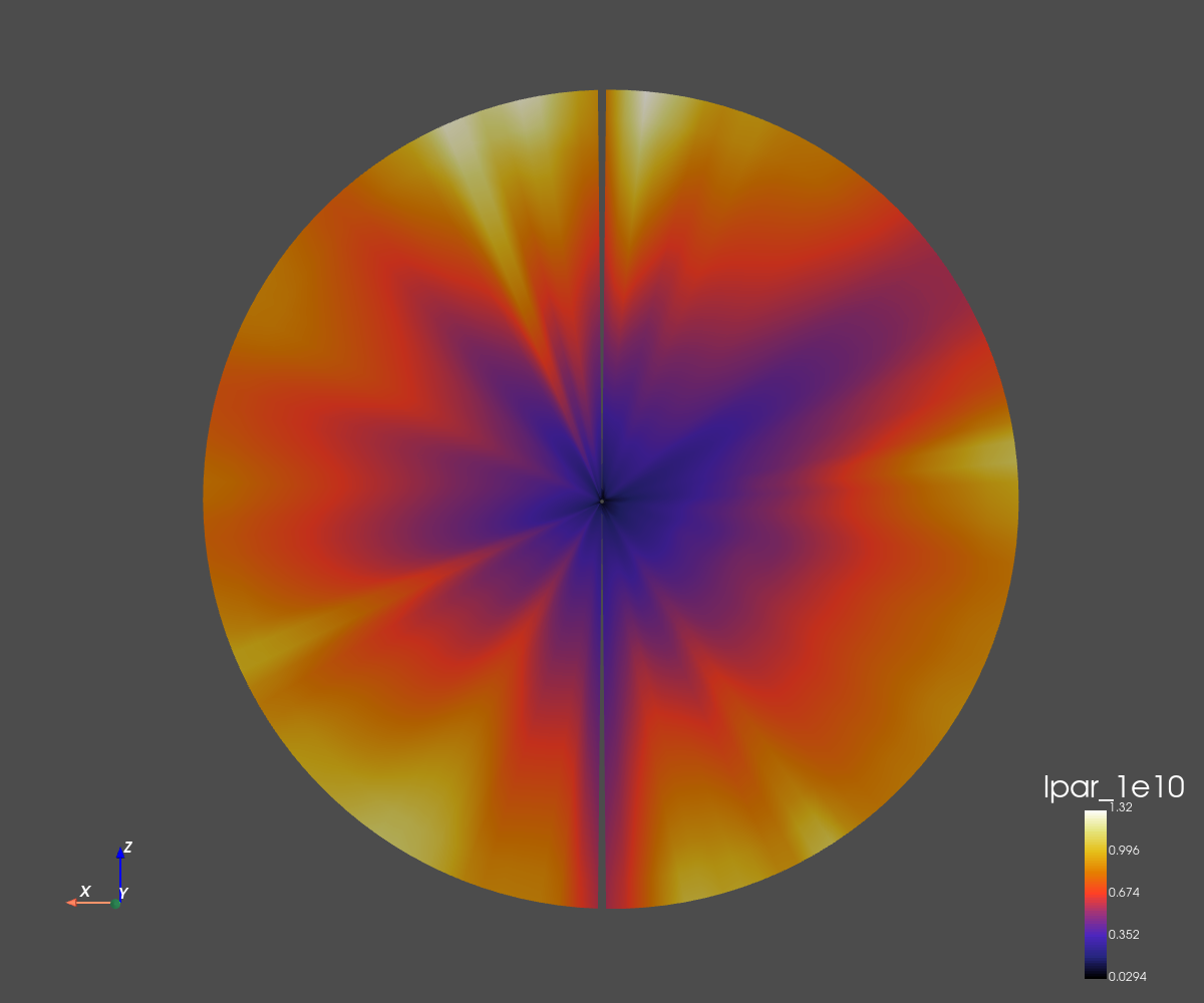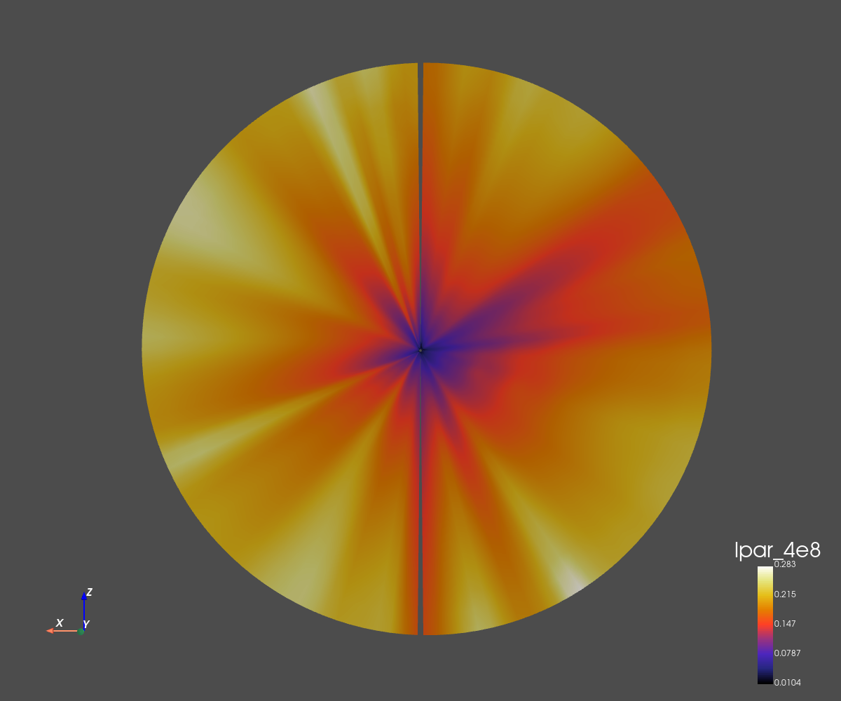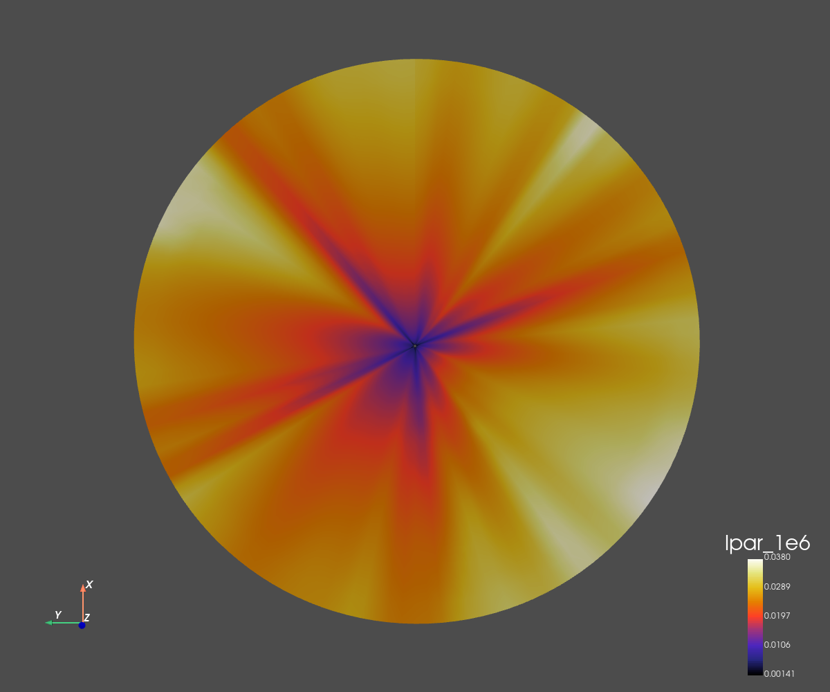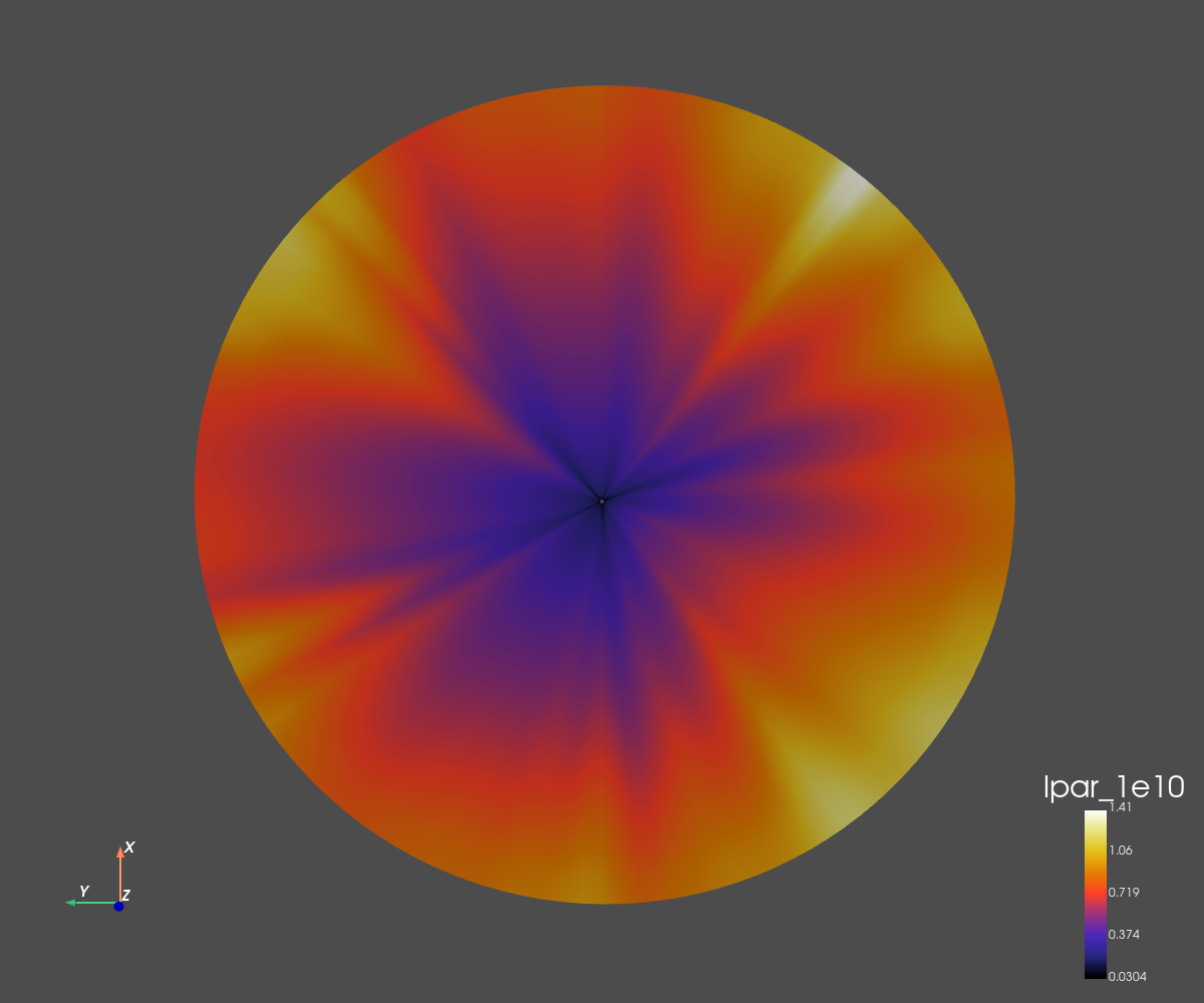 Zoom on parallel mfp for a particle with rigidity of 400 MV (AU) (equatorial view, which means in the XY plane)