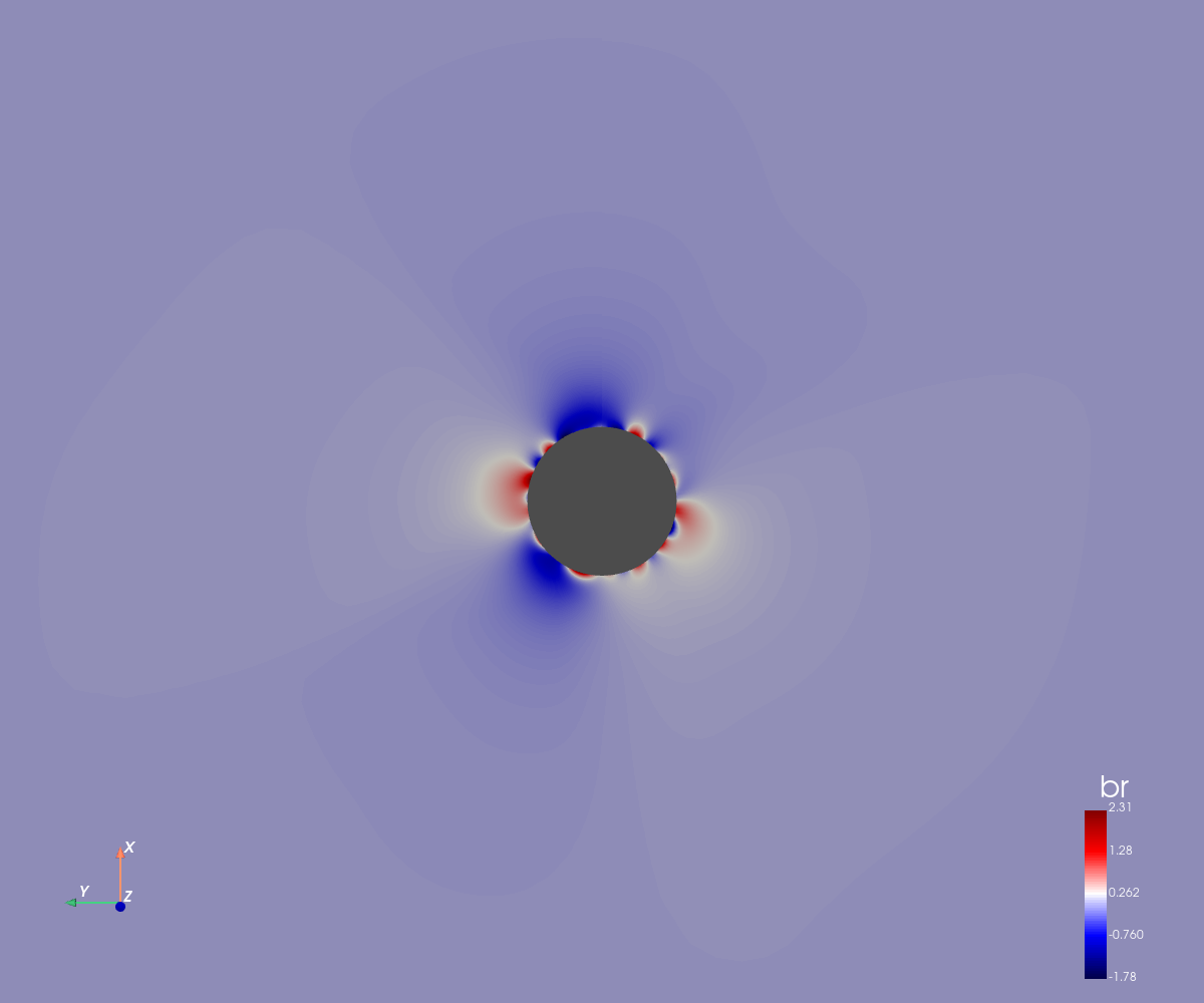 Latitudinal magnetic field of the star (equatorial view, which means in the XY plane) (G)