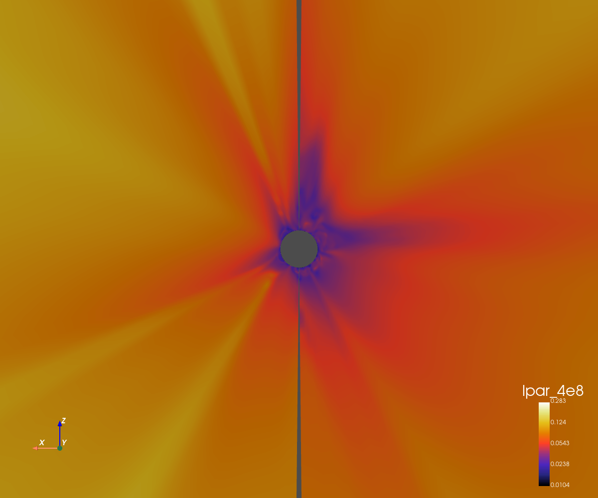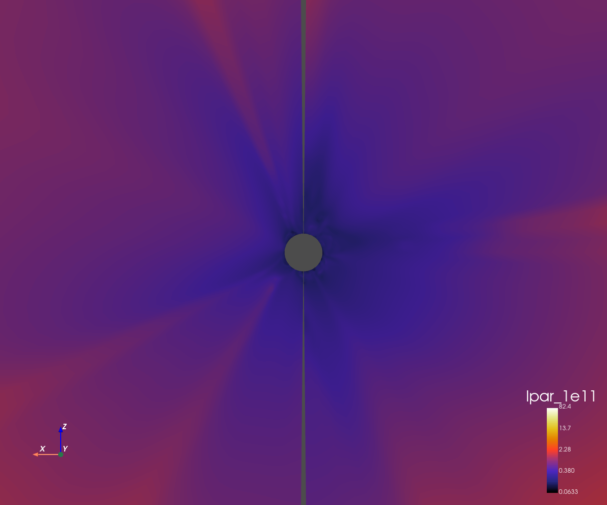 Zoom on parallel mfp for a particle with rigidity of 1e5 MV (AU) (meridional view, which means in the XZ plane)
