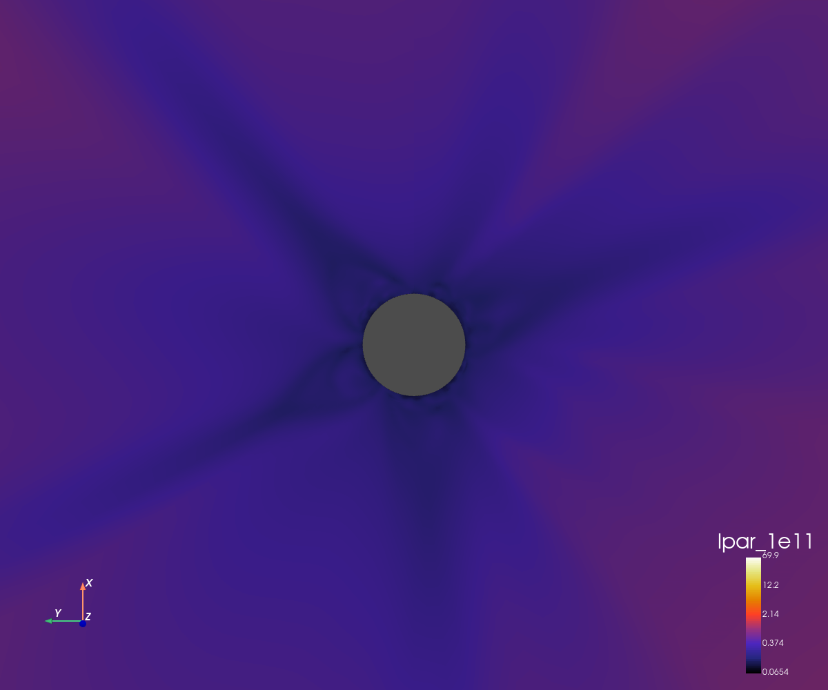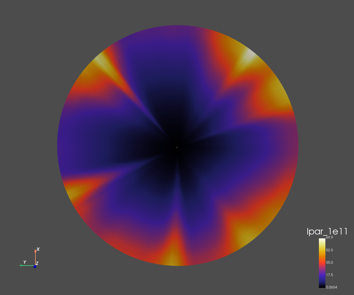 Parallel mfp for a particle with rigidity of 400 MV (AU) (equatorial view, which means in the XY plane)