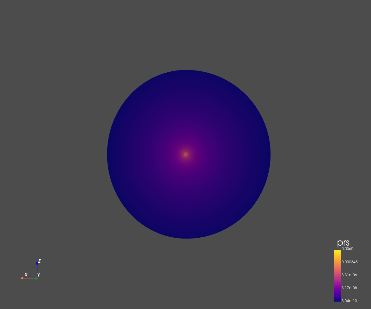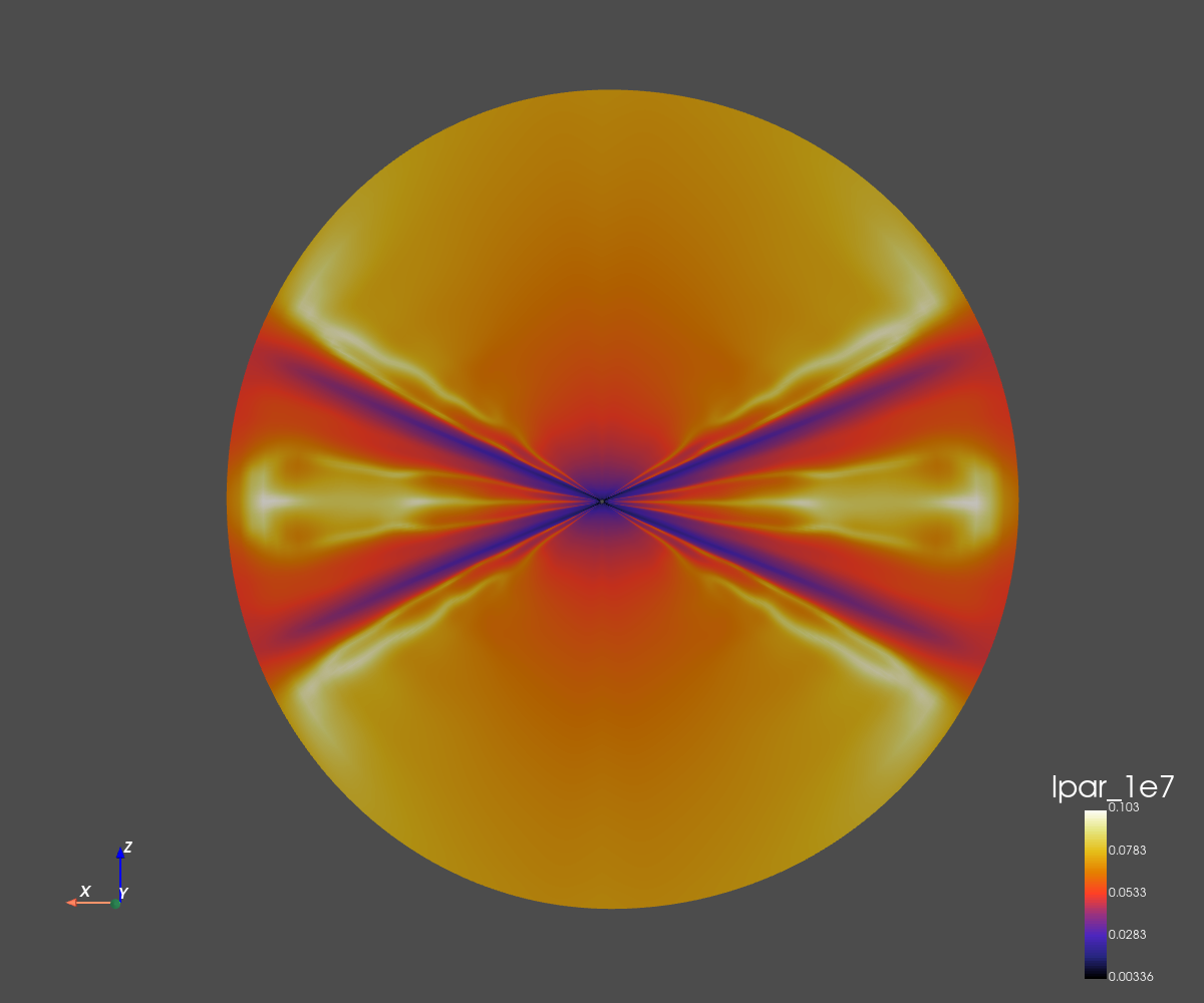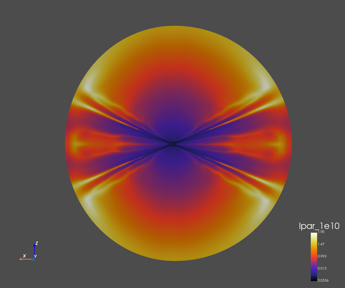 The grid dimension is 256x256 in spherical coordinates (radius and co-latitude).