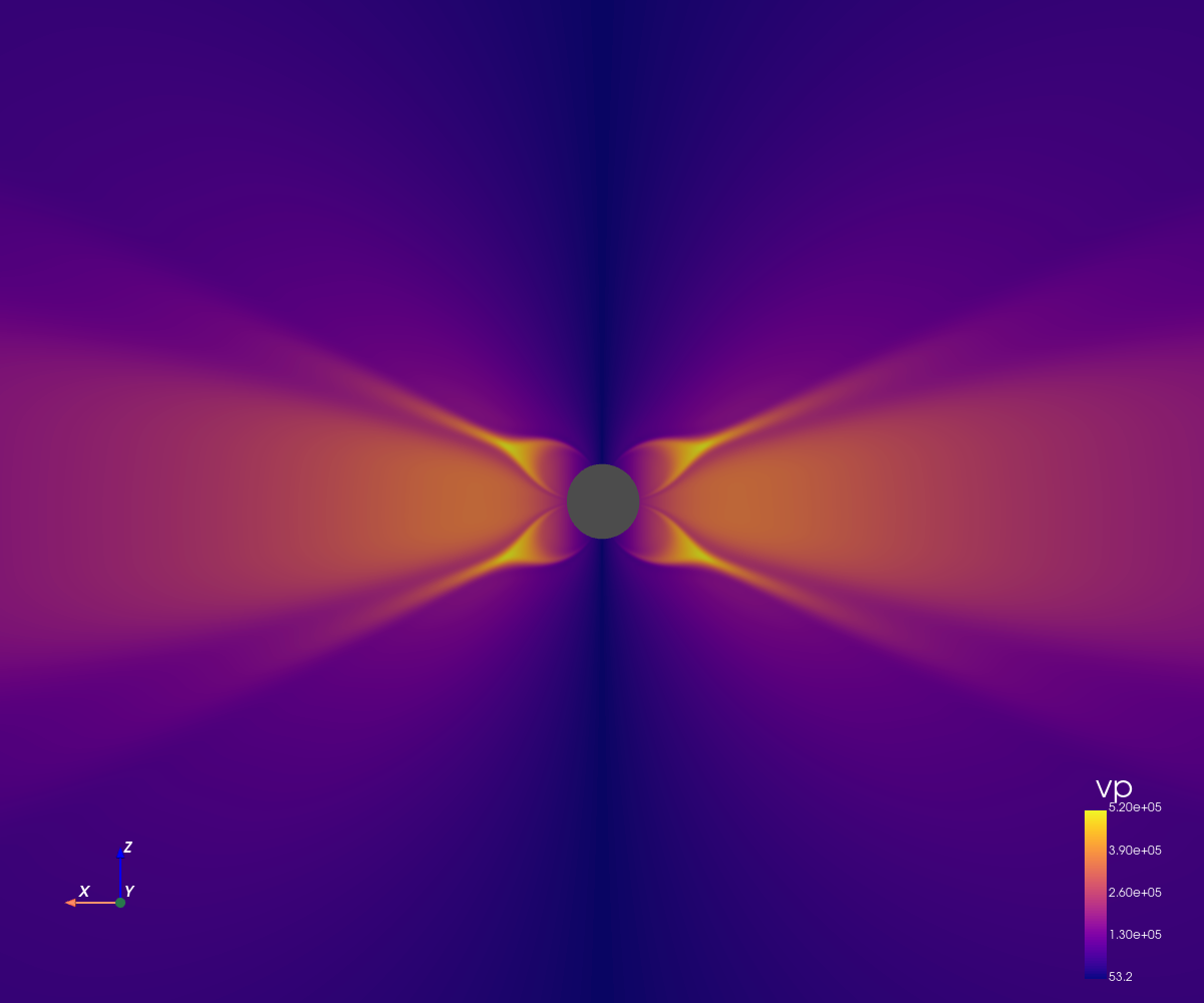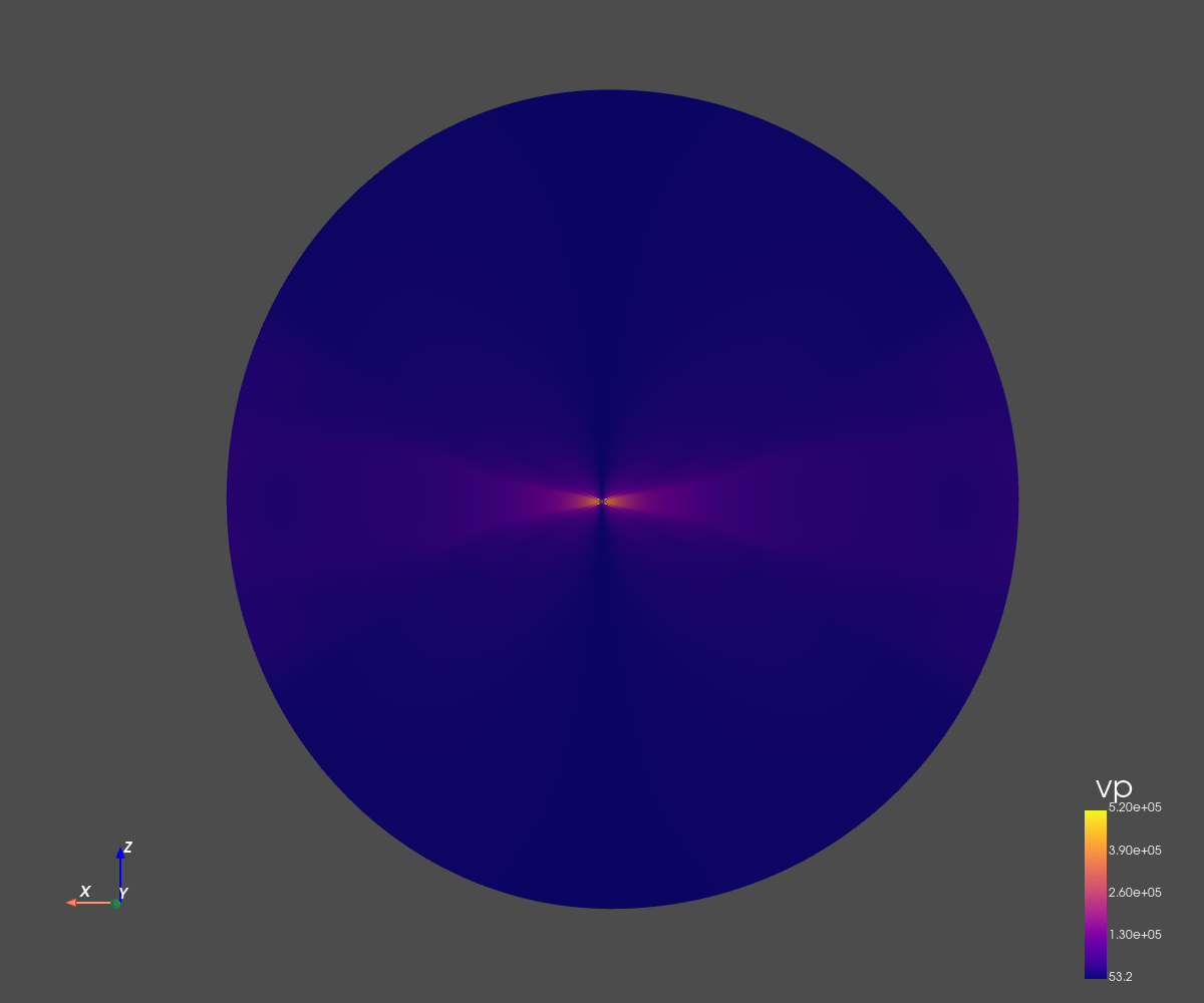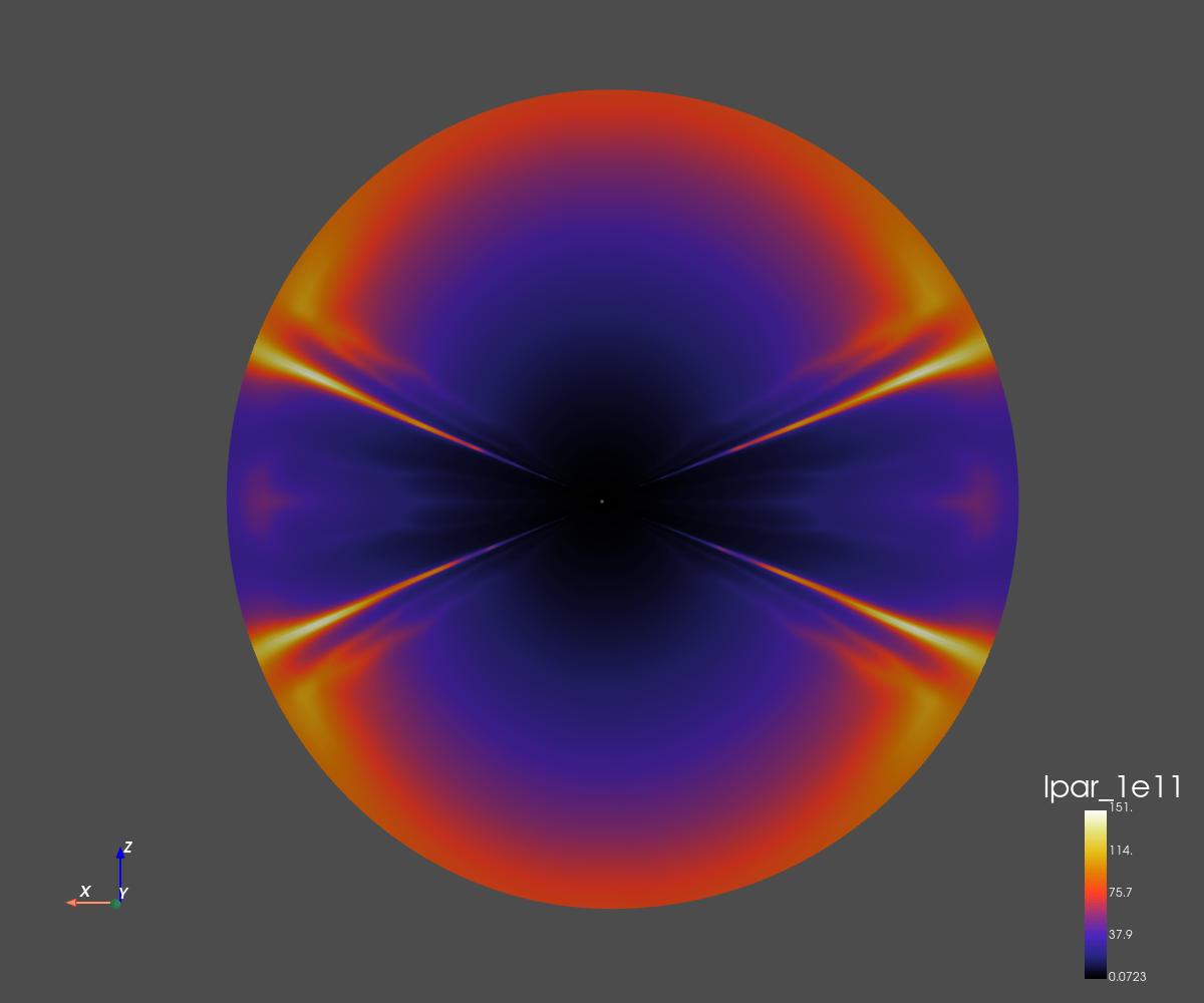 The grid dimension is 256x256 in spherical coordinates (radius and co-latitude).
