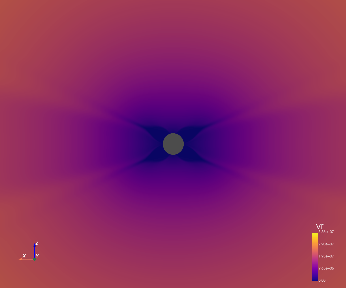 Zoomed radial velocity of the solar wind (cm/s)