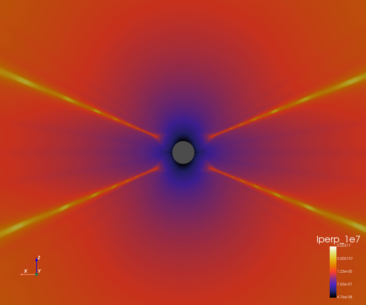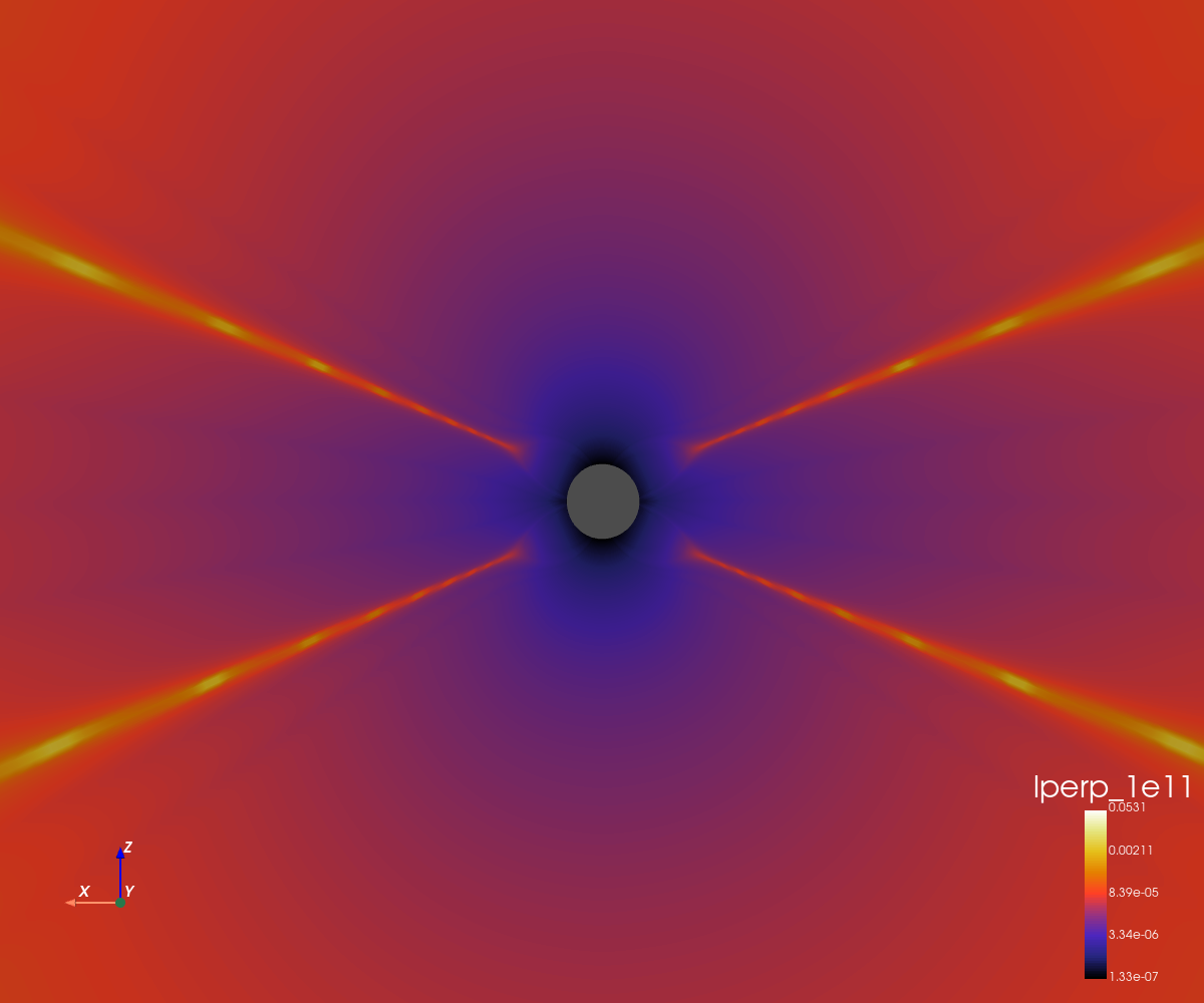 Perpendicular mfp for a particule with rigidity of 1e5 MV (AU)